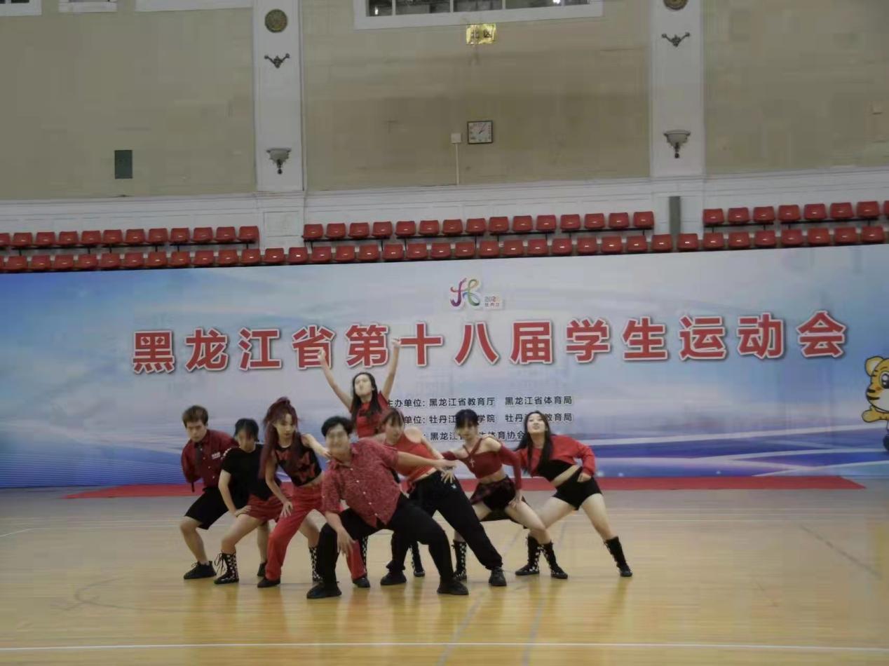 2022年8月13-17日由黑龙江省教育厅、黑龙江省体育局主办的黑龙江省第十八届学生运动会健美操比赛在牡丹江师范学院举行。来自全省18个地市和学校的200余名运动员参加了本次比赛。77779193永利官网健美操队8名运动员在领队郑宏伟,教练苏莉的带领下参加了大学甲组啦啦操项目自由舞蹈组比赛。永利官网运动员在比赛中发挥出色,最终凭借新颖的套路、娴熟的技术动作以及默契的配合,最终夺得了第二名的优异战绩。