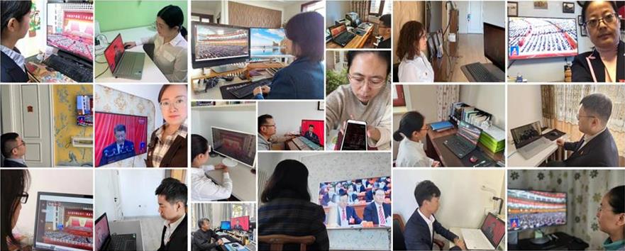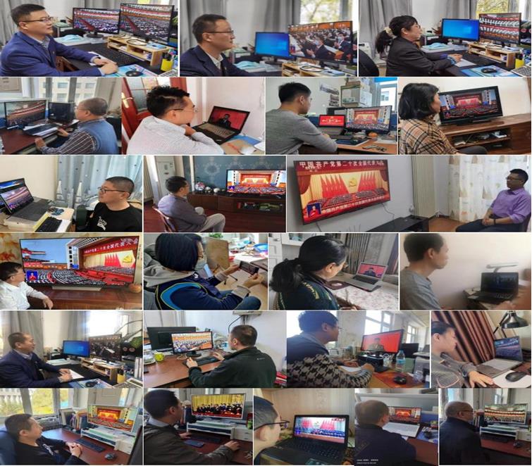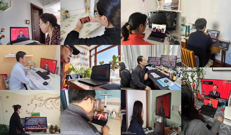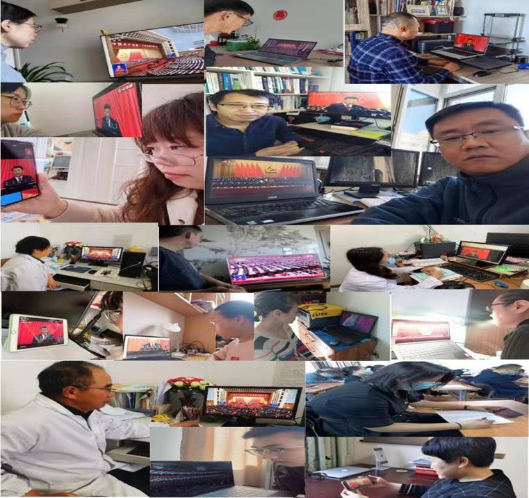 学院领导班子成员、各党支部书记、教师党员代表和学生党员代表在遵循疫情防疫要求的情况下在化工楼430线下集体收看了大会直播盛况,其他全体师生党员通过线上观看了直播盛况。
