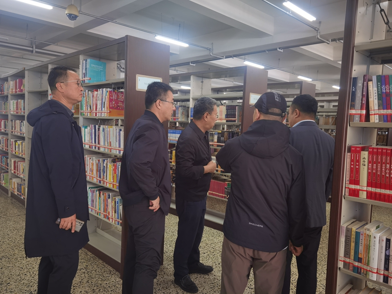 检查组一行在图书馆检查