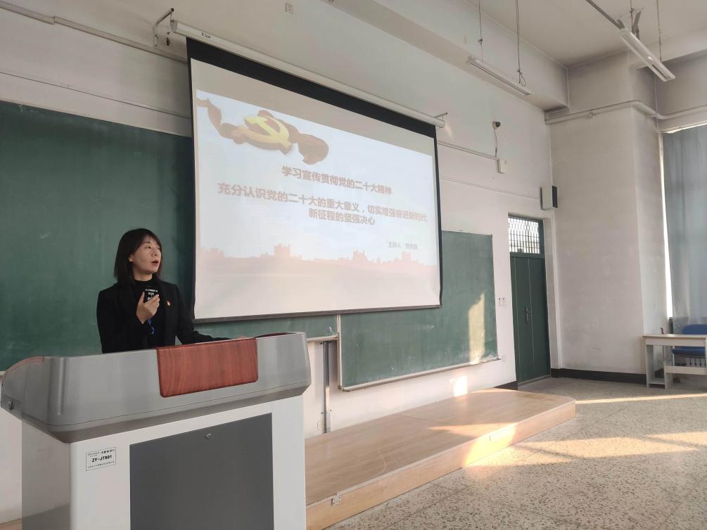 10月25日测通学院党委书记黄春丽以《学习宣传贯彻党的二十大精神》为题,围绕深刻领会党的二十大的重大意义、党的二十大的主题、过去5年的工作和新时代10年的伟大变革、习近平新时代中国特色社会主义思想的世界观和方法论等方面内容对党的二十大精神进行了宣讲阐释。她勉励全体学员牢记习近平总书记殷切嘱托,树立理想信心,关心国家发展,掌握知识提升能力,把自身的前途命运同国家民族前途命运紧密联系在一起,主动投身到社会主义现代化强国的伟大实践,勤奋学习、增强本领,在强国建设、民族复兴伟业中贡献青春力量,在助力科技自立自强中彰显青春担当。