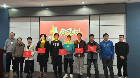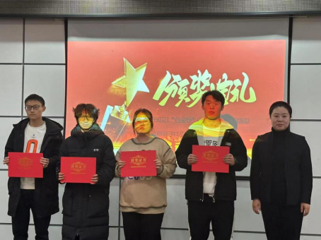 获奖名单宣读结束后,由电气与电子工程学院党委副书记兼副院长张颖书记和高晓松辅导员为获奖参赛组颁奖并合影纪念。