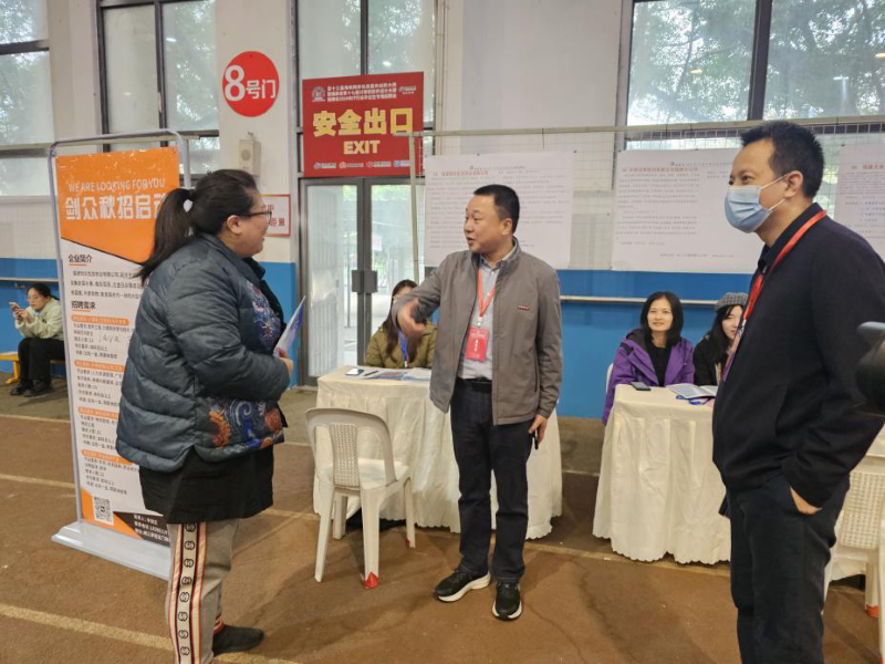 刘坤雁副书记、宋广军副书记在福建省2024届IT行业毕业生专场招聘会现场与企业招聘负责人沟通交流