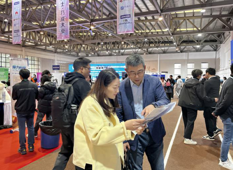 辅导员田钰析向企业招聘负责人推荐毕业生