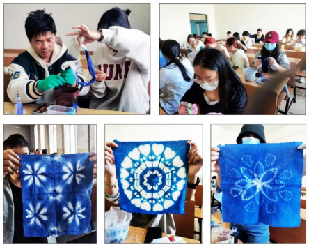 虽然扎染课堂的学生来自于不同专业,但他们对扎染创作的喜爱却都是一样的,学生们在快乐的氛围中不知不觉完成了扎染作品,不仅学会了扎染技法,还更深刻理解了学习我国传统手工艺的价值和意义,提高了自身的审美素养与创作能力,这种“寓教于乐”,让学生“参与其中,乐在其中”的授课方式很受学生欢迎,取得了很好的教学效果。