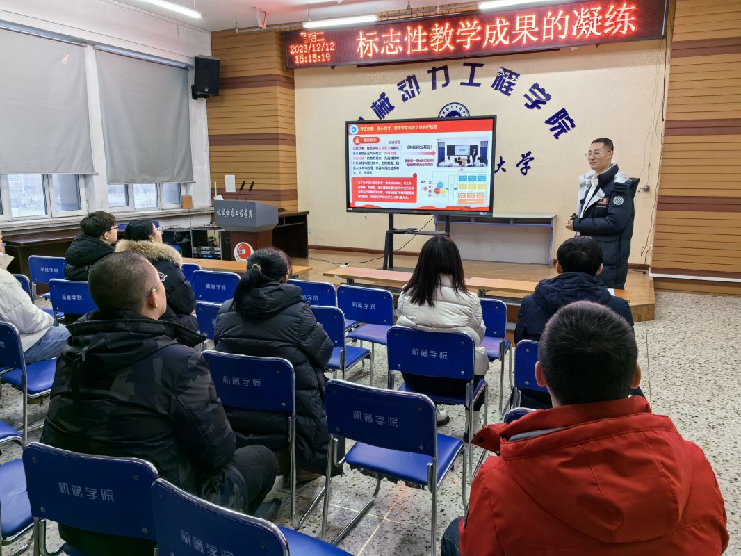 此次活动邀请到了黑龙江省教学名师、黑龙江大学电子工程学院院长王尔馥教授,作题为《以科研眼光看教学——课程思政教学设计及教学创新大赛经验分享》专题讲座,校教学名师、机械动力工程学院副院长姜金刚教授作题为《标志性教学成果的凝练》的专题讲座。