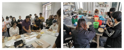 2023年秋,《陶艺体验馆-和老师一起做陶瓷》一共增设了11个课程班,由7名教师组成教学团队,分别承担陶艺课程的教学工作,学生们通过陶艺课程的学习,不仅认识了陶瓷的传统文化及艺术审美语言,同时还通过陶艺设计实践体验,对陶瓷造型、装饰、烧制工艺有了更全面的了解,并能掌握一般基础的陶艺制作方法。通过陶艺课程体验,激发出了学生的学习热情,启发了学生的创造灵感,增加了学生的艺术修养,通过学习每个同学都能完成两件陶艺小作品,获得良好的体验与收获。