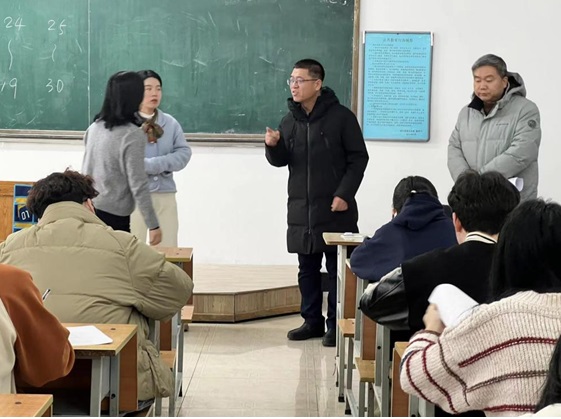 根据学校期末考试安排,学院专门召开了考风考纪专项会议,严明教师认真履行监考职责,学生遵守考试纪律,并组织开展2023-2024学年第一学期期末考试巡考工作。院长武建龙、副院长姚锋敏、副书记李国辉多次深入考场巡查期末考试相关工作。巡考过程中,现场查看学生考试证件、教师监考情况及考场环境,对考场秩序、考场设施环境、监考人员履行监考职责及学生遵守考试纪律等情况进行严格检查,与监考教师进行沟通交流,对加强考试管理提出指导建议。从巡查整体情况看,各考场监考教师认真履职,学生自觉遵守纪律,考试工作秩序井然,期末考试氛围良好。