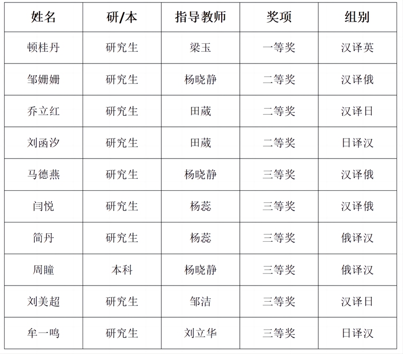 近年来,外国语学院始终秉承“以赛促学、以赛促教”的育人理念,积极引导学生参加全国各类翻译大赛,学生的翻译实践能力和综合语言素养得到有效提升。今后,外国语学院将继续以学科竞赛为抓手,持续提升人才培养质量,着力培养具有家国情怀和国际视野,讲好中国故事的优秀外语人才。