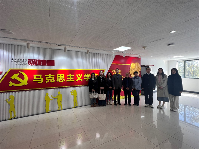 为深入贯彻落实党的二十大报告提出的“推进大中小学思想政治教育一体化建设”精神,坚持思政课在课程体系中的政治引领和价值引领作用,在交流互鉴中统筹推进大中小学思政课一体化建设,2024年1月16日,马克思主义学院习概论教研部主任孙英浩教授、德法教研部主任王晨教授、德法教研部教师王明明博士、习概论教研部教师鲁烨博士及四名研究生一行人员赴浙江传媒学院走访交流。