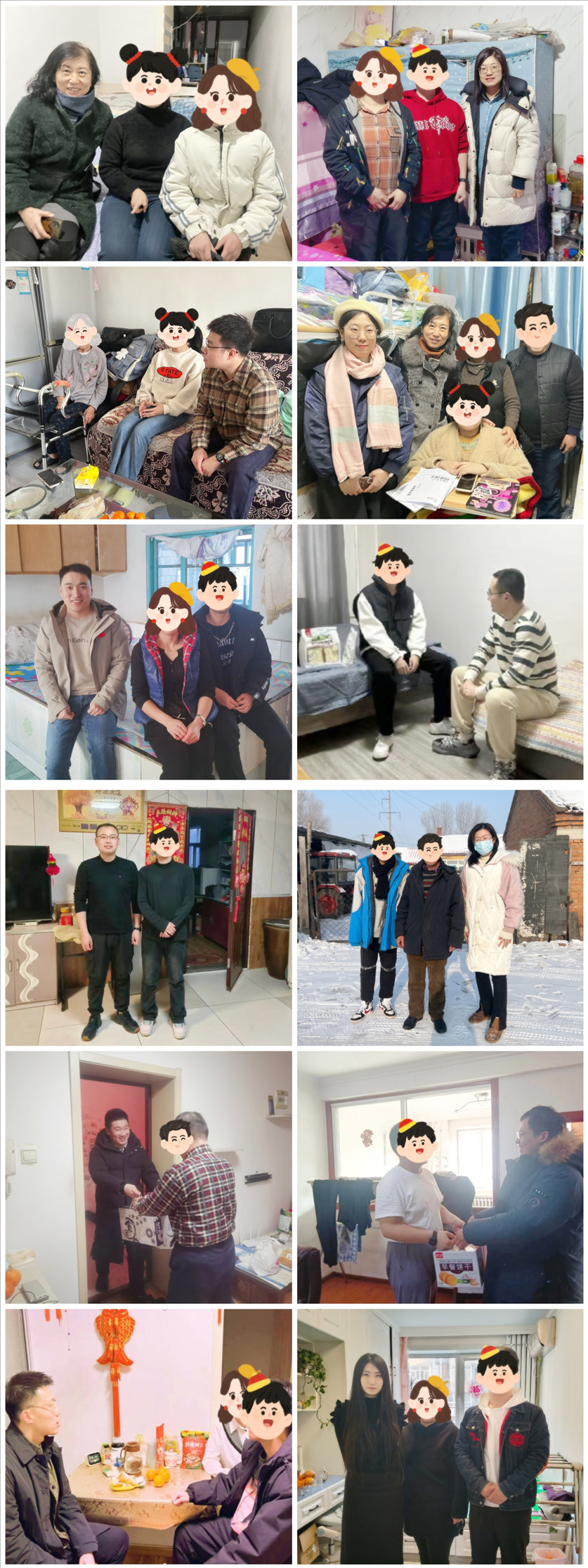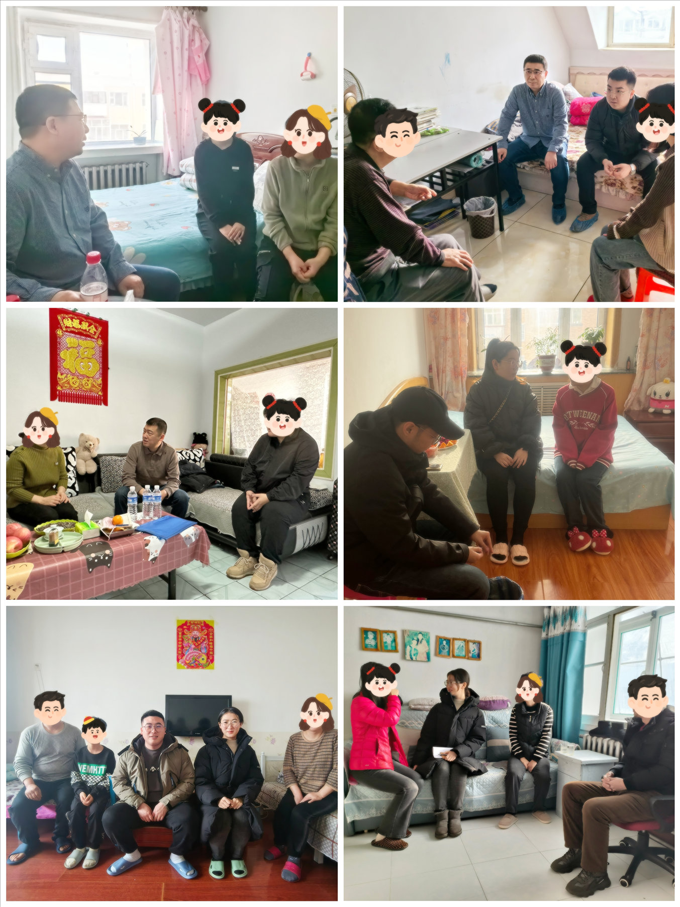 在切实做好家庭经济困难学生家访基础上,各学院将“思想引领、学业规划、心理帮扶、生活援助、安全管理、就业指导”六方面深度融合,全面拓展家访目标任务。副书记和辅导员们还为受访学生自费精心准备了慰问礼品,代表学校为学生送去了温暖和关怀,送去了新春的祝福。