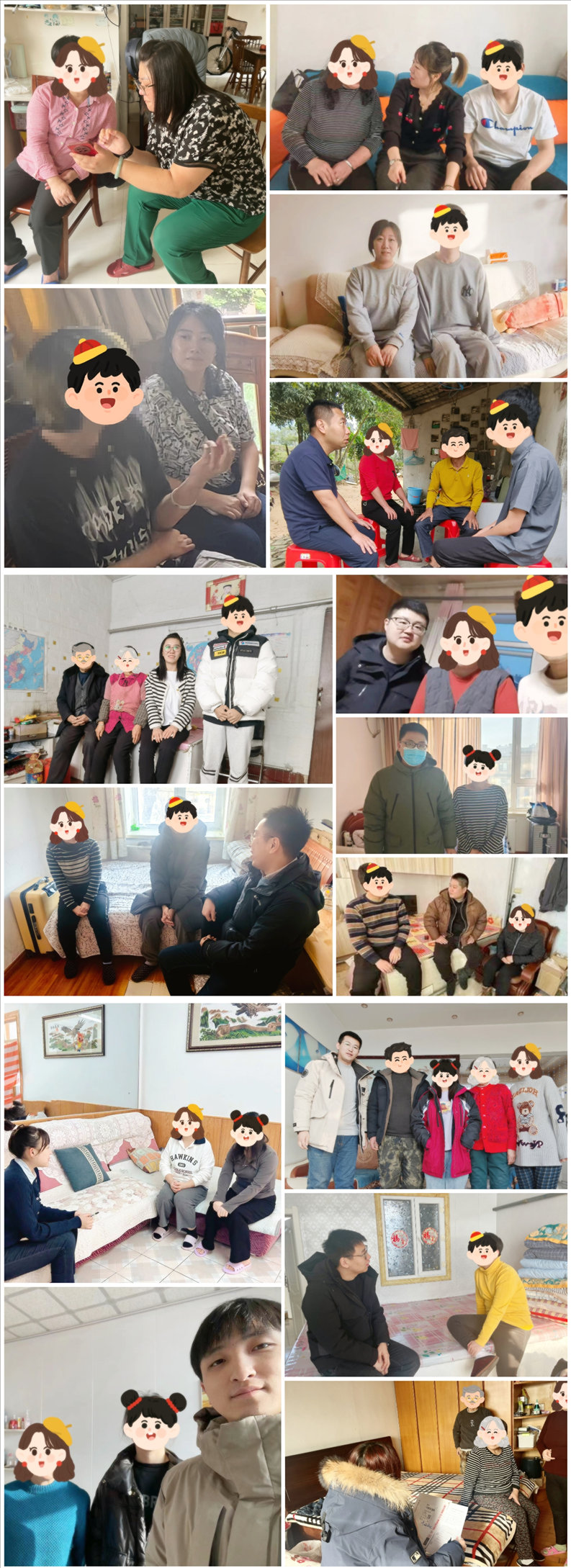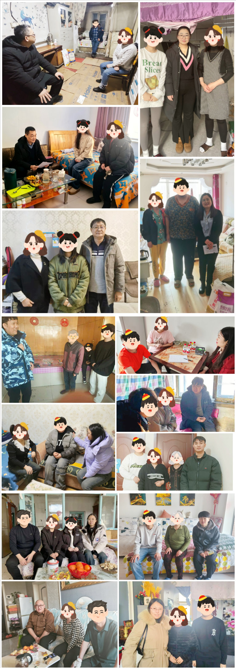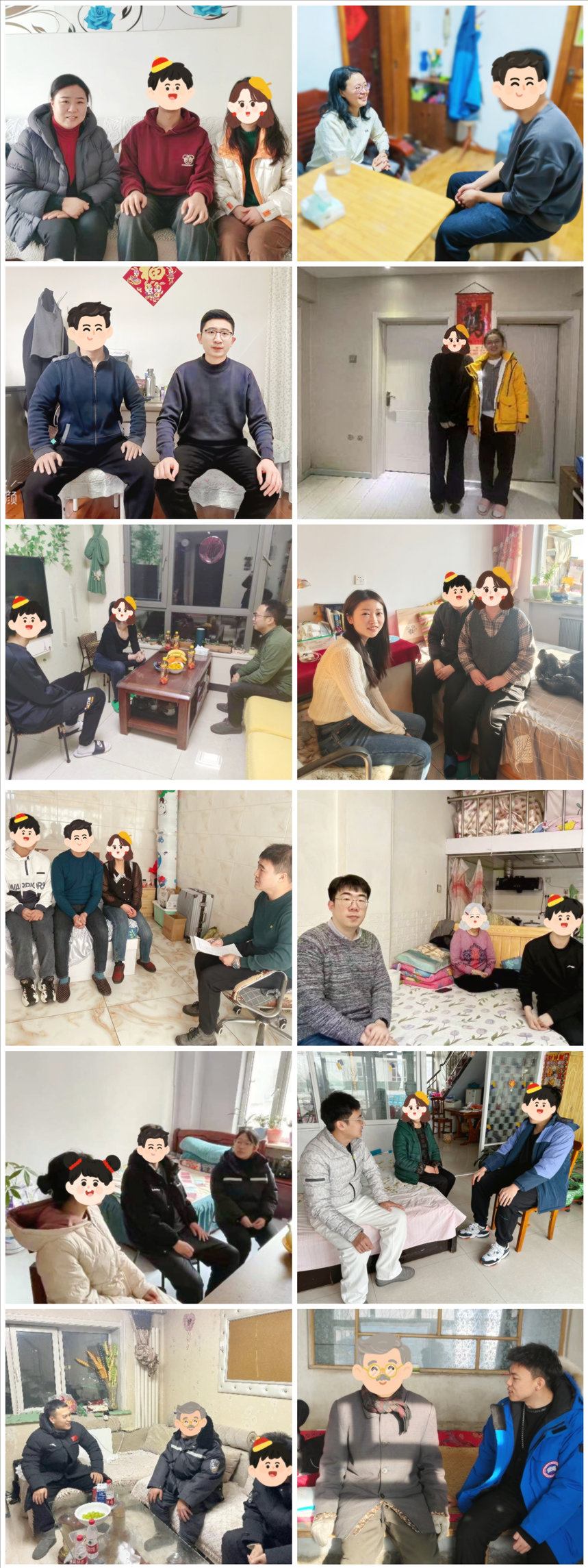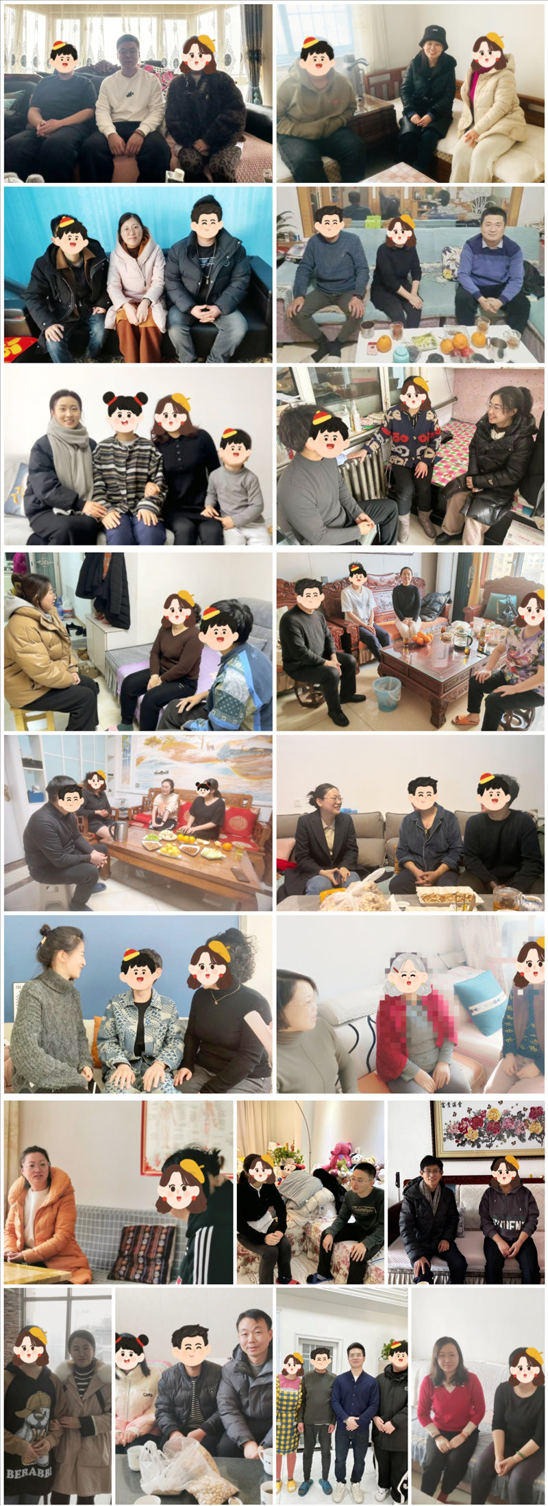 为深入贯彻落实习近平总书记关于思想政治工作的重要论述,深化家校联动协同育人机制,形成家校育人合力,提升育人温度、发挥育人实效,充分发挥家庭教育在大学生思想政治教育过程中的积极作用,2024年寒假永利官网全体学生工作人员深入学生家庭开展家访活动,13个工作组部署规划了分布于11个省、最远达海南省的多程线下走访路线,累计线下走访168个、线上走访1362个超三分之一经济困难学生家庭,“零距离”为学生解决实际问题,圆满完成2024年寒假辅导员家访工作。