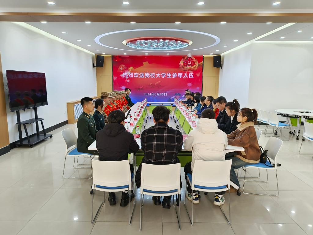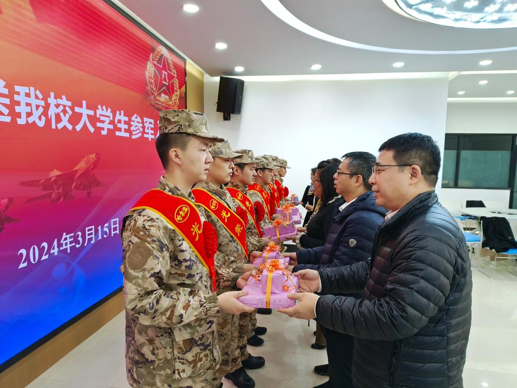 欢送会上,各相关学院党委副书记、辅导员,征兵工作负责人邢宝山与应征入伍的各位学生进行了深入的交流,并为应征入伍的同学发放纪念品。