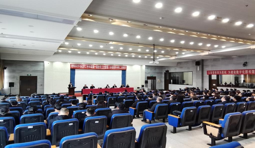 为深入学习中国工会第十八次全国代表大会会议精神,坚决贯彻落实校工会工作部署,3月15日下午,材料科学与化学工程学院第一届教职工暨工会会员大会第二次会议在南区图书馆报告厅召开,学院全体教职工参加会议,会议由院党委书记张桂玲主持。