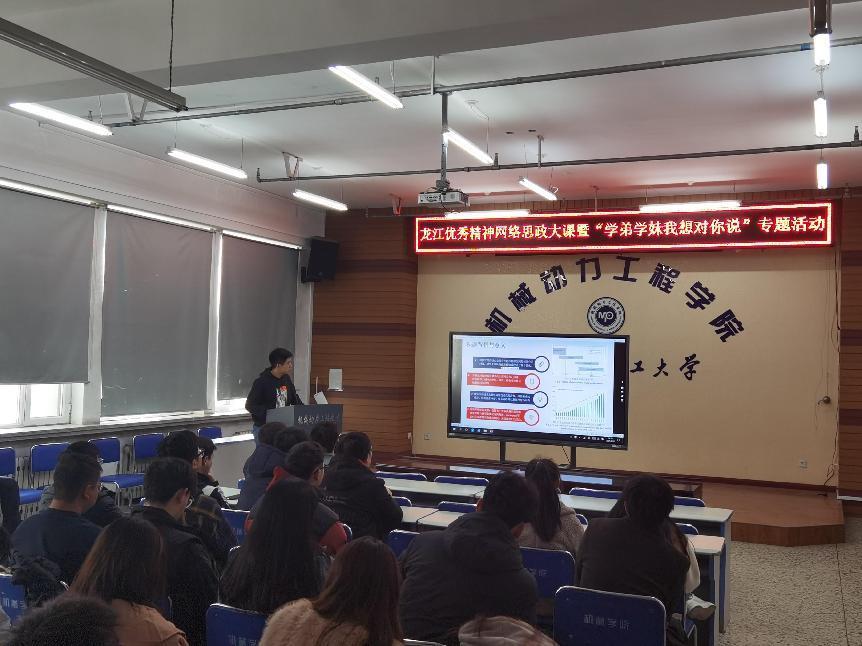 为深入贯彻落实习近平新时代中国特色社会主义思想,学习贯彻党的二十大精神,扎实开展学习贯彻习近平新时代中国特色社会主义思想主题教育,机械动力工程学院开展龙江优秀精神网络思政大课堂专题活动,同学们明白了未来要积极弘扬龙江优秀精神,努力学习专业知识,将“小我”融入到祖国发展“大我”中去,让青春脉搏与新时代同频共振,为奋力谱写全面建设社会主义现代化国家龙江新篇章贡献青春力量。