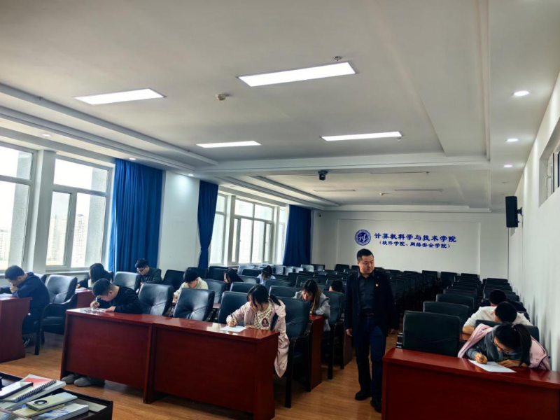 为全面落实立德树人根本任务,着力提升学院辅导员的理论水平和专业素养。促进辅导员队伍专业化发展,3月27日上午,计算机科学与技术学院在新主楼E1523开展了第一期学生工作人员基础知识测试。学院党委高度重视,本次测试由学院党委副书记刘坤雁组织,测试以闭卷方式进行,期间学院院长黄海现场巡考。