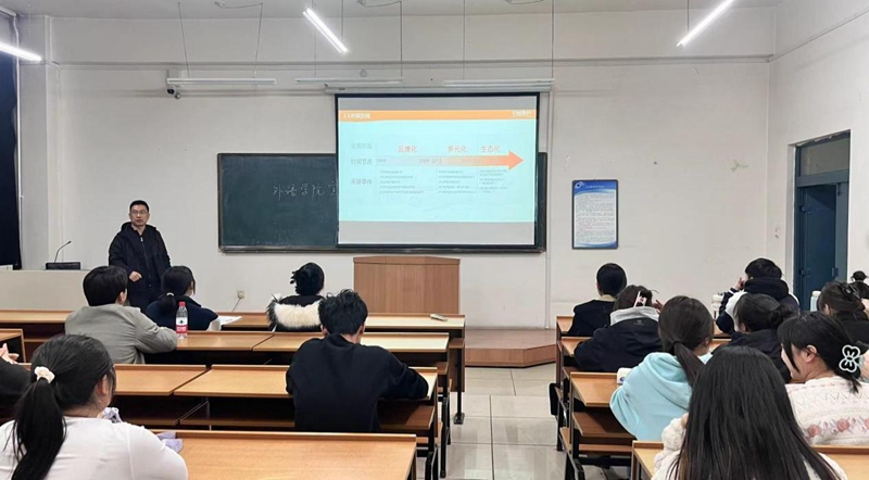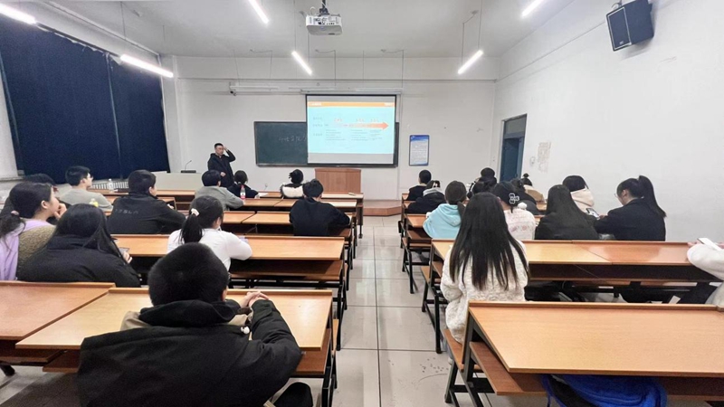 宣讲会上,日出东方控股股份有限公司人力资源总监刘冰向同学们介绍了公司的历史背景、业务范围以及发展规划,重点阐述技术研发、市场营销、管理培训等多个职位职能,在讲解的同时,也帮助同学们进一步思考及确定自身的职业发展方向。
