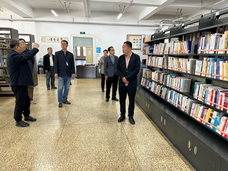 检查组一行在图书馆检查