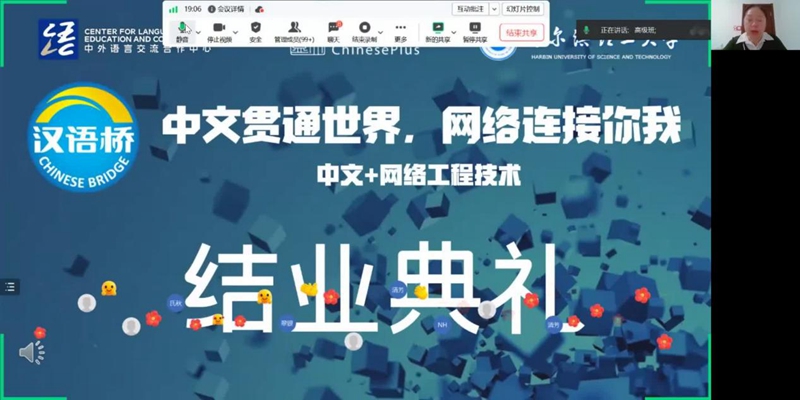 在结营仪式上,汉语桥项目的全体师生共同回顾了过去四周的学习历程。印度尼西亚籍学生苏清欢、白俄罗斯籍学生程晓菲、亚美尼亚籍学生爱丽、日本籍学生岩琦真理以及越南籍学生杜清姮作为代表发言。他们在发言中巧妙地将课堂所学的词语运用到位,形容上课时的氛围“热情洋溢,切实感受到了‘人间烟火气’”,老师和同学们在课堂上“双向奔赴”。他们均期待能够亲临77779193永利官网,深入感受汉语教学,希望能够和梦想中的城市哈尔滨,来个亲密接触。