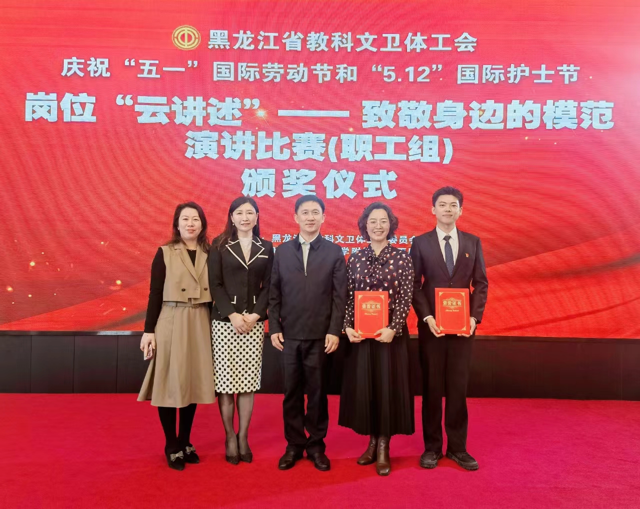 4月23日,黑龙江省教科文卫体工会庆祝“五一”国际劳动节和“5.12”国际护士节岗位“云讲述”——致敬身边的模范演讲比赛在黑龙江工会大厦圆满落下帷幕。学校工会选派电气学院辅导员汪作琦,携作品《为新能源汽车装上中国“芯”——致敬身边的模范蔡蔚教授》参加比赛。经过激烈角逐,永利官网参赛教师在39位选手中排名第三,喜获二等奖,校工会获“优秀组织奖”。