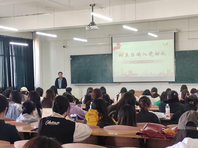 外国语学院党委书记、党委副书记、党委组织员为党课培训班学员授课。外国语学院党委精心谋划部署,在前期通过各党支部开展入党申请人、转正一年内的新党员的党课培训,在本期培训班中,对教工党员、转正一年内的新党员、发展对象以及入党积极分子进行集中培训。
