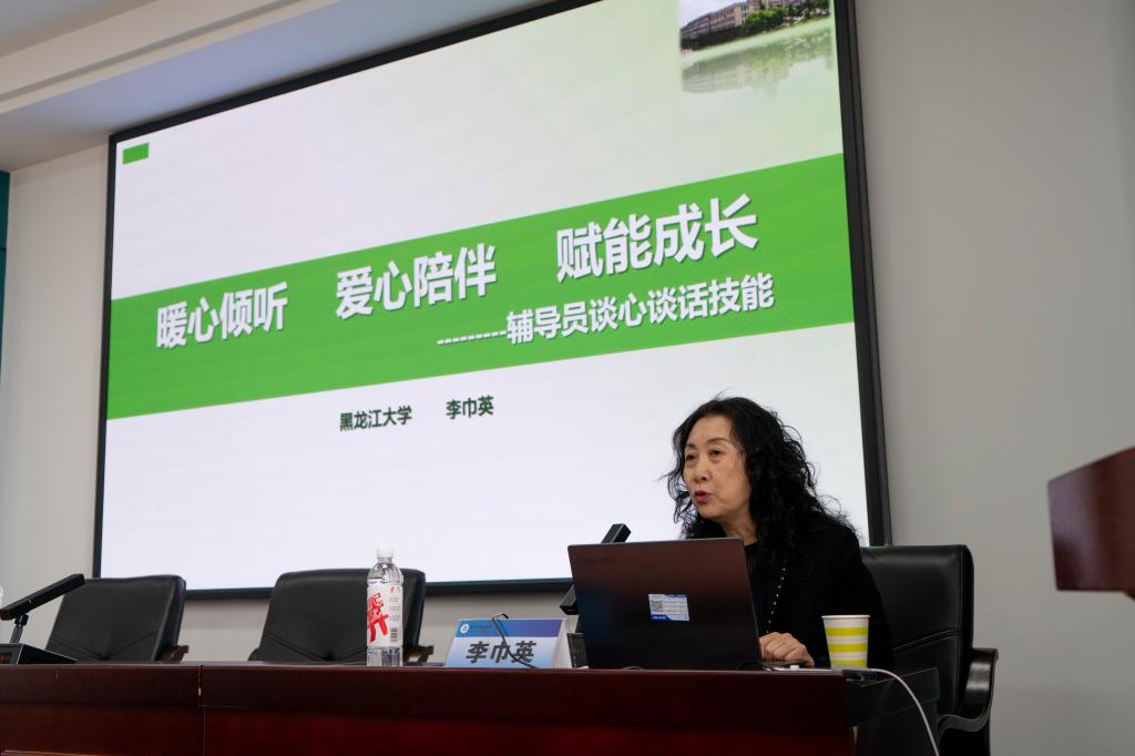 为深入学习贯彻党的二十大精神,贯彻落实习近平总书记关于教育的重要论述,进一步落实立德树人根本任务,提高辅导员心理健康教育工作的理论素养和专业水平,提升辅导员谈心谈话的技能和水平,不断推进心理育人工作取得实效。党委学生工作部于5月21日上午9时在教学主楼E1523成功举办以“暖心倾听、爱心陪伴、赋能成长”为主题的辅导员谈心谈话技能专题培训,主讲嘉宾为黑龙江大学学生工作处副处长、黑龙江大学心理咨询中心主任、中国心理卫生协会大学生心理咨询专业委员会常委,黑龙江省高校学生心理健康教育专家指导委员会秘书长李巾英教授。党委学工部部长戴湘竹、副部长谭世信,全体学生工作副书记、辅导员参加本次培训,培训由党委学生工作部副部长田海燕主持。荣成学院辅导员线上参加培训。