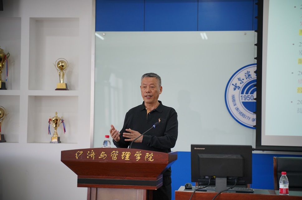 为深入学习习近平总书记关于新质生产力的重要思想,助力学院高水平科学研究,2024年5月23日下午,经济与管理学院邀请中国科学院大学柳卸林教授作题为“论新质生产力的核心驱动力和培育”的学术报告。学院院长武建龙教授,副院长王莉静教授、王卫教授,中青年骨干教师、硕博研究生代表共150余人参加了此次报告会,会议由经济与管理学院院长武建龙教授主持。