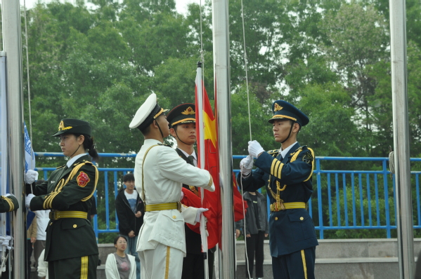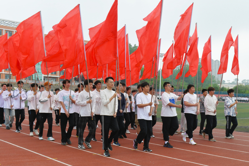 上午8时,伴随着雄壮的《运动员进行曲》,国旗护卫队迈着坚定的步伐引领着花束队、刀旗队、裁判员方队以及参加检阅的11支方队依次从主席台前走过。他们身着统一服装,步伐矫健、英姿勃发,响亮的口号彰显出昂扬向上的精神风貌,各参赛代表队富有创意的精彩表现给大家留下深刻印象。入场后,全体师生进行庄严的升国旗、升校旗仪式。