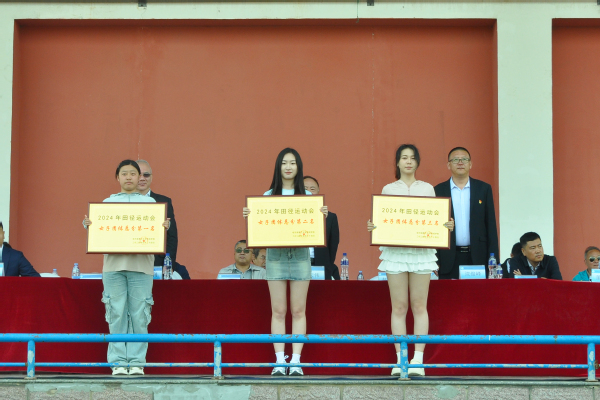 比赛结束之后,进行运动会闭幕式。大会总裁判长体育教学部主任张德胜老师宣布竞赛成绩,团委书记兼学生工作办公室副主任孙晶宣布体育道德风尚奖、优秀队列奖评比结果以及威海市首届高校足球联赛优秀运动员名单。学院领导为获奖单位及运动员颁奖。