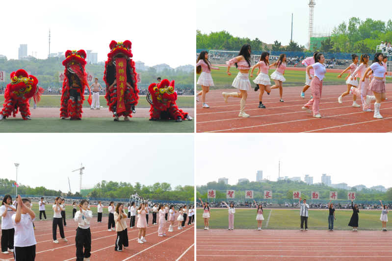 学生社团、大学生艺术团成员以饱满的热情为同学们带来一场美轮美奂的视听盛宴。歌舞热情奔放,青春跳跃,彰显了大学生的动感活力;热烈的舞狮和健身表演,精彩纷呈,展现了社团同学对兴趣爱好的执着追求。比赛过程当中,还有各系同学带来的精彩助演,引得运动场上的阵阵掌声与欢呼声。