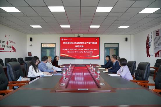 武建龙院长简要介绍了经济与管理学院的情况,表示学院高度重视国际化工作,希望与女王大学在学生联合培养、教师学术交流、科学研究合作等方面开展实质性合作。邵杨处长介绍了学校的办学情况,以及目前与英国女王大学交流合作情况,期待能够在人才培养等领域开展深度合作。