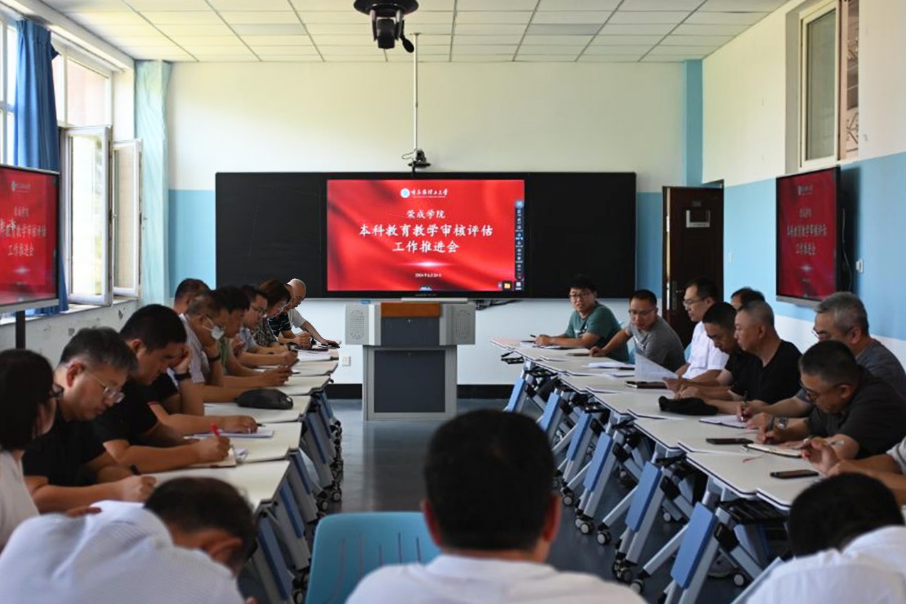 6月24日下午,荣成学院在智慧教室召开本科教育教学审核评估工作推进会。学院评建工作领导小组全体成员参加会议,同时邀请学校教务处副处长沈涛出席会议。
