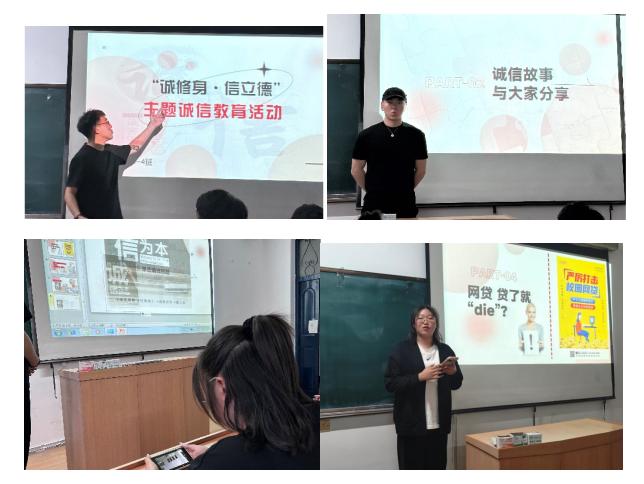 学校结合实际组织开展形式多样、内涵丰富的诚信及金融安全教育活动,增强学生诚信意识和责任意识。面向师生深入开展防范电信诈骗、非法集资以及严防“校园贷”、套路贷等教育。结合“勤学明理,笃学精工”学风建设活动、党纪主题学习教育活动等做好学生考试诚信教育。结合 2024 届毕业生离校工作做好国家助学贷款毕业生诚信还款教育活动。