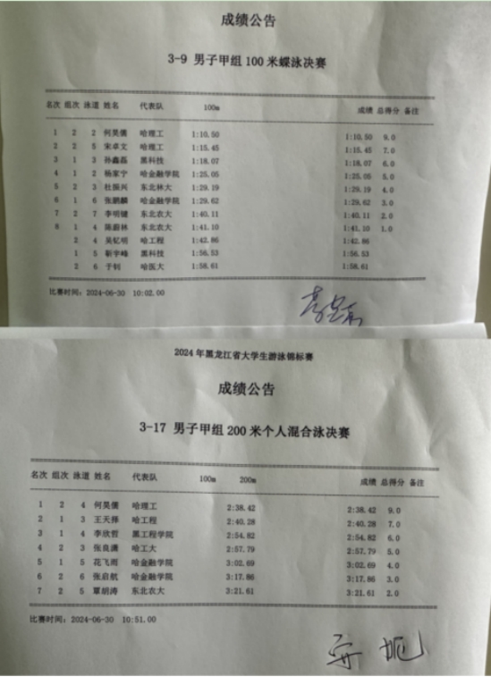 为持续推动我省大学生游泳运动发展,提高学生体质健康水平,发挥体育竞赛独特育人功能,按照相关赛事安排,6月29—30日,由黑龙江省教育厅、黑龙江省学生体育协会主办的“2024年黑龙江省大学生游泳锦标赛”,在东北林业大学游泳馆如期开赛,来自我省16所高校共220余名教练员、运动员参赛。