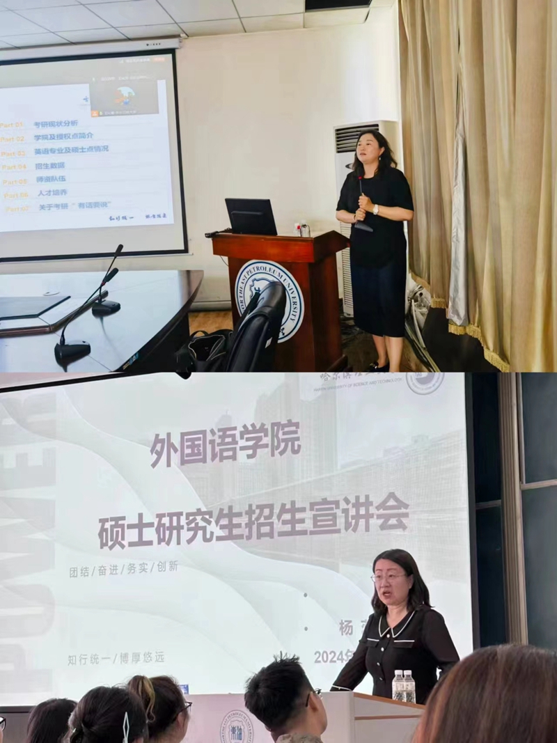 为有效吸引优质生源,不断提升研究生招生质量,7月2-3号,外国语学院赴荣成、大庆开展研究生招生宣讲活动。学院副院长杨蕊、英语系系主任高英祺、日语系副主任王若楠参加宣讲活动。