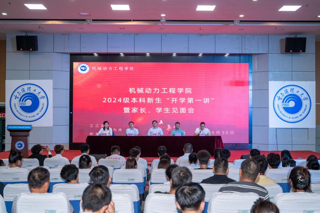 为搭建家校沟通桥梁,进一步加强学校与家长之间的密切联系,充分发挥家校协同育人的积极作用,落实立德树人根本任务,汇聚育人合力,机械动力工程学院于8月30日18时在学校西区一号楼0220报告厅召开了学院领导与2024级新生及家长的见面会。学院党委书记姜彬,院长张元,党委副书记杨芳,副院长姜金刚、戴野,新生辅导员代表、班主任、班级助理及新生家长等共同参加本次见面会,会议由杨芳主持。