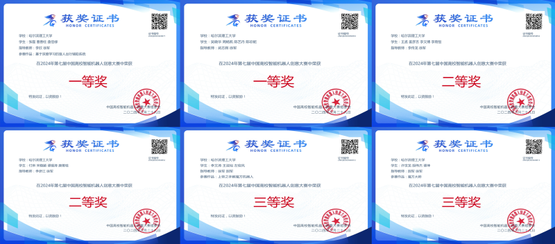 近日,第七届中国高校智能机器人创意大赛决赛在浙江余姚举行。本次大赛设置了家用智能机器人、魔方机器人和智能机器人对抗赛三项主题赛,罗斯方块机器人、四足智能机器人和VEXU智能机器人对抗赛三项专题赛及人形机器人特别赛,共七项赛事。全国来自29个省(自治区、直辖市)501所高校的1338支队伍,共计5000余名师生参加决赛。永利官网代表队荣获国家级一等奖2项、二等奖2项、三等奖2项,国奖数量再创新高。