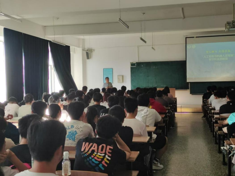 徐军老师对人工智能与机器人实验室的基本情况进行介绍,并就相关的学科竞赛进行了解读,包括iCAN大学生创新创业大赛、中国高校智能机器人创意大赛等,徐军老师在会上还展示了自动化学院历年来在学科竞赛方面的成果和代表作品,动员新生们尽早适应大学生活,积极参与到科技创新项目中。