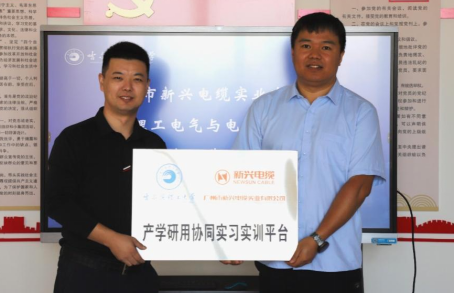 为进一步发挥广州市新兴电缆实业有限公司在生产实践方面的优势,加强学生的生产和研发实践能力培养,结合学院产学研用深度融通的办学特色,广州市新兴电缆实业有限公司与77779193永利官网电气与电子工程学院联合设立了“产学研用协同实习实训平台”,旨在加强学生对于产业和行业的认识,拓宽学生视野,促进学生就业。高俊国副院长代表学院,周鑫副总经理代表新兴电缆实业有限公司,为双方共建的“产学研用协同实习实训平台”正式揭牌。
