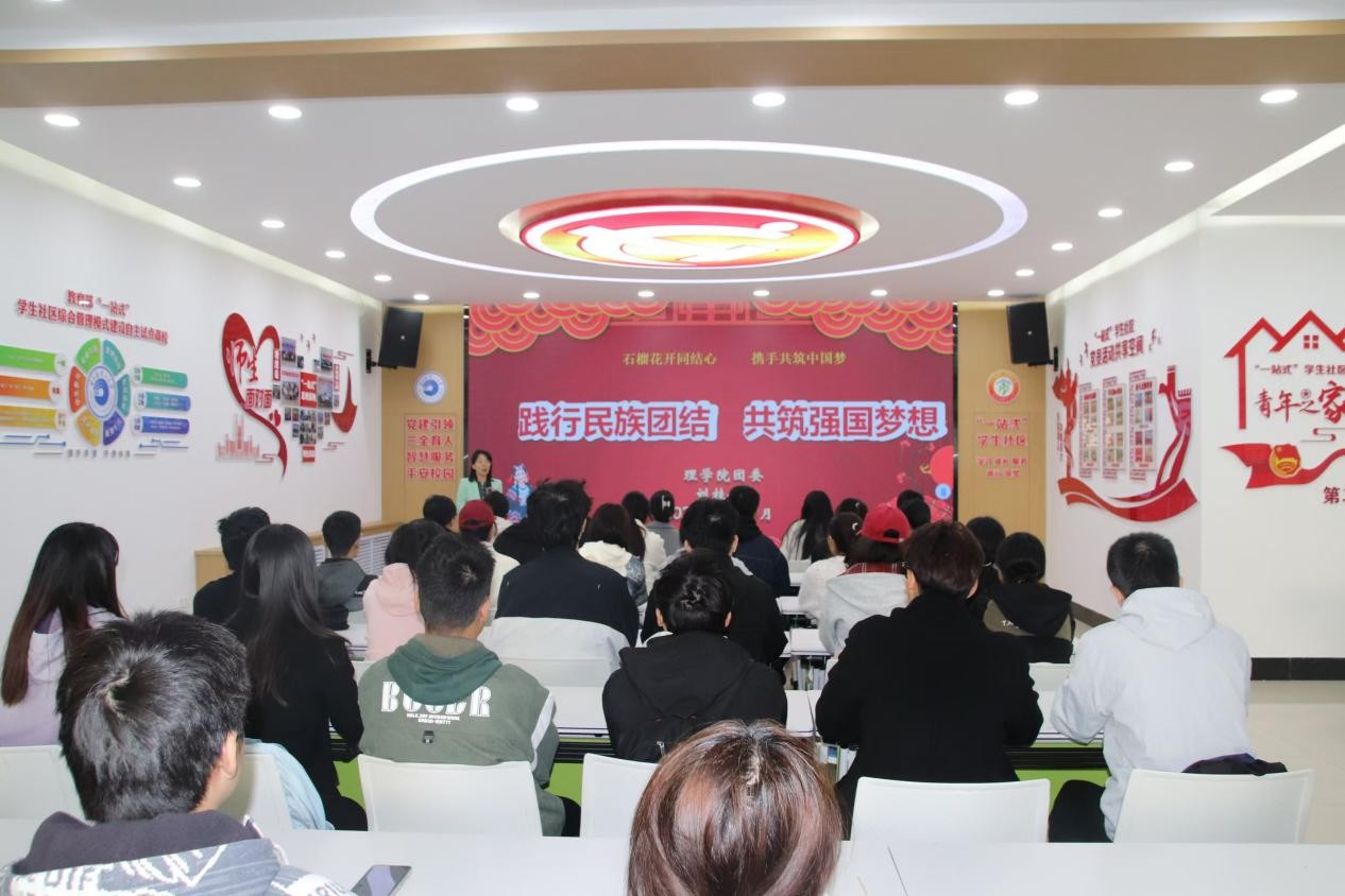 校团委坚持以学习为主线,紧紧围绕巩固和深化团员和青年主题教育成果为目标导向,创新学习方式为抓手,构建“团委书记——团支部书记——团员和青年”阶梯式宣讲体系,努力构建“课程思政”育人新格局。宣传月中,全校12个基层学院团委书记面向各学院全体团干部讲授主题团课,团干部分别面向班级团支部开展民族团结主题团日活动,宣讲活动起到良好的效果,在学校内广泛掀起民族团结进步宣传热潮。校学生会以铸牢中华民族共同体意识为主线,开展 “石榴花开结同心 携手共筑中国梦”主题团日活动,以实际行动做民族团结的践行者。
