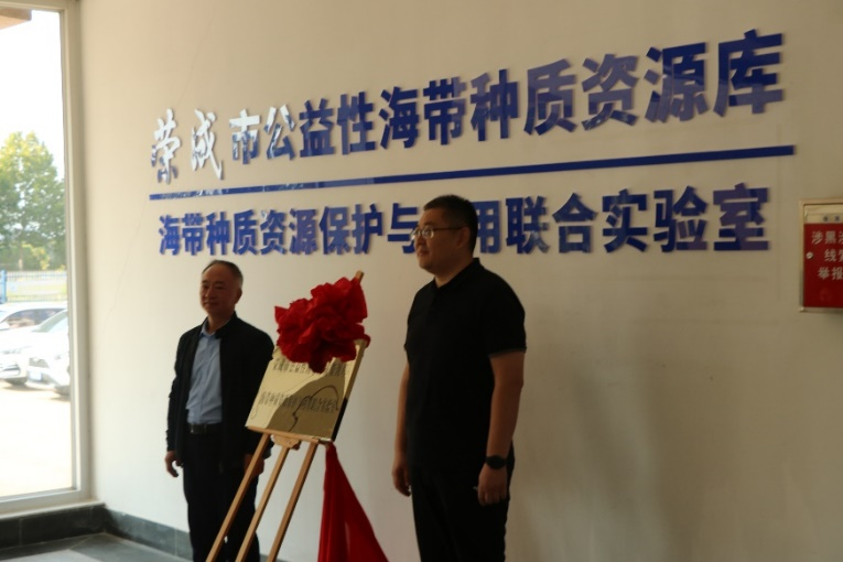 10月16日,荣成学院院长段宏伟和荣成市海洋发展局局长李健松为荣成市公益性海带种质资源库暨荣成市海带种质资源保护与利用联合实验室揭牌。