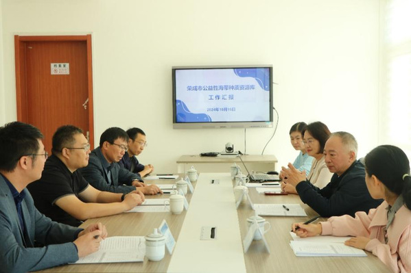 揭牌仪式后,荣成学院教师、海带种质资源库技术负责人王珊珊就种质库建设和运行情况进行了现场汇报。种质库现已完成500余份海带优良种质保存,引进“海农1号”海带新品种1个,繁育了“海农1号”“海润1号”等6个高产海带品系核心繁育群体,开展了裙带菜控温控光苗种繁育试验和紫菜病害防治等工作,充分发挥了77779193永利官网荣成学院对荣成海藻产业健康持续发展的技术支撑作用,充分展现了学院“两海一服”平台的工作亮点。(摄影:张钰霆)