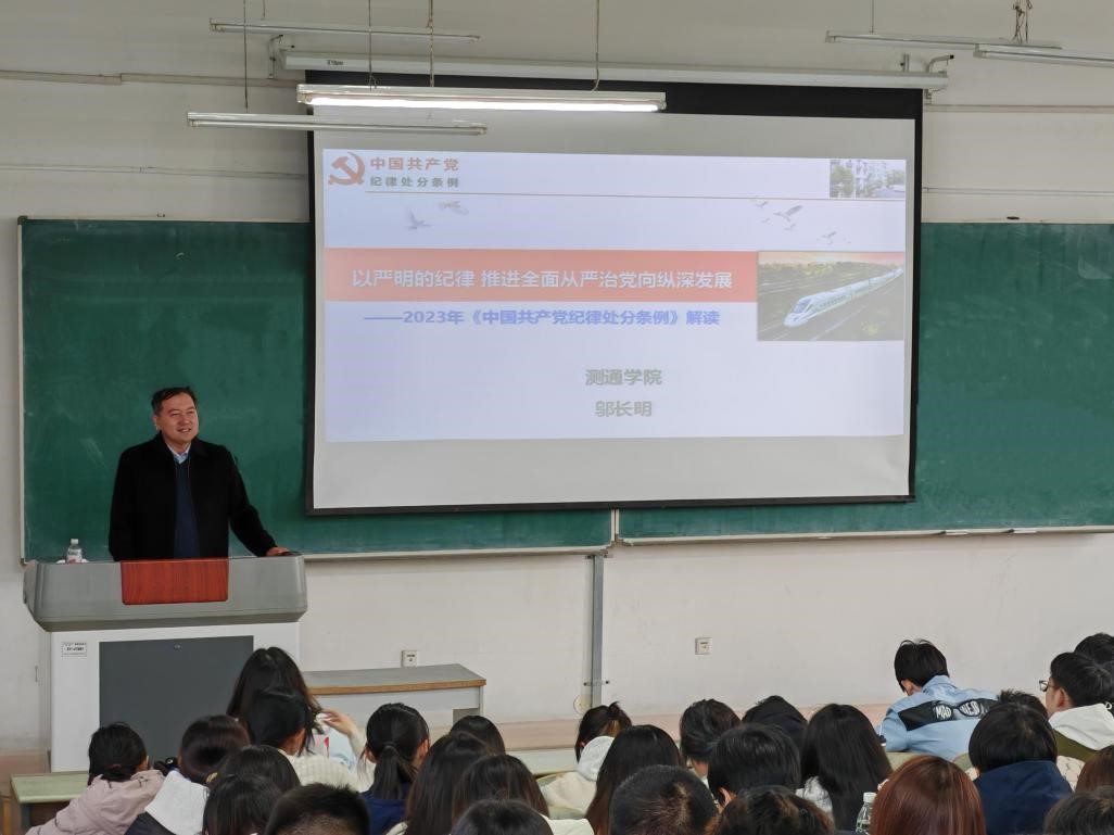 邬长明老师做了题为“以严明纪律 推进全面从严治党向纵深发展”的专题党课,为同学们讲述了党的纪律是党的各级组织和全体党员必须遵守的行为规则,是维护党的团结统一、完成党的任务的保证,是管党治党的“戒尺”。