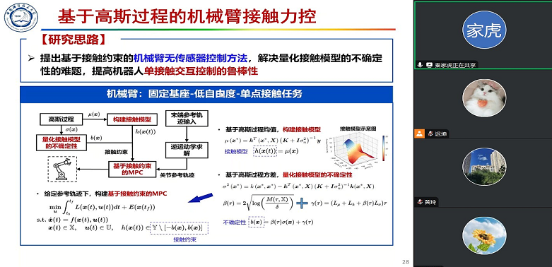 报告会上,秦家虎教授以移动机器人的实际应用为切入点,分别介绍了其在自主导航、运动规划与控制方面的关键技术和发展趋势。特别地,针对移动机器人运动规划与控制这一研究热点,系统介绍了团队目前在动态环境下、未知接触下、交互式多机器人的运动规划与控制三个方向的最新研究进展,包括基于控制屏障函数的安全最优控制方法、基于接触约束的机械臂无传感器控制方法、基于交互式安全指数的端到端运动规划方法等成果,可提升机器人在运动、避障及交互下的安全性和鲁棒性,在无人机竞速、多机器人协同导航和基于AR智能人机交互等场景得到应用。