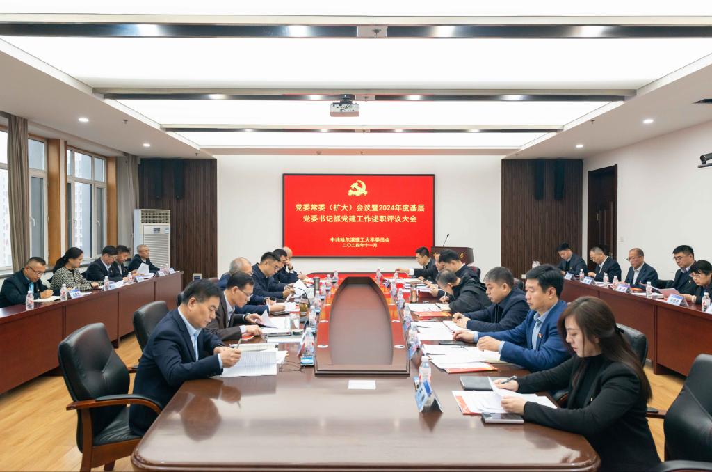 为深入学习贯彻习近平新时代中国特色社会主义思想,全面落实党的二十届三中全会精神部署,贯彻落实习近平总书记关于党的建设的重要思想,压紧压实强基固本政治责任,推动基层党组织书记履职尽责,全面提高基层党建工作质效,按照省委教育工委《关于做好2024年度高校党组织书记抓基层党建工作述职评议考核的通知》有关要求,11月25日上午,学校在教学主楼第二会议室召开了党委常委(扩大)会议暨2024年度基层党委书记抓党建工作述职评议大会。会议由党委副书记、工会主席郭加利主持,学校领导、党委常委、基层党委书记、党委职能部门负责同志、省两代表一委员、民主党派代表、党支部书记和党员代表参加会议。