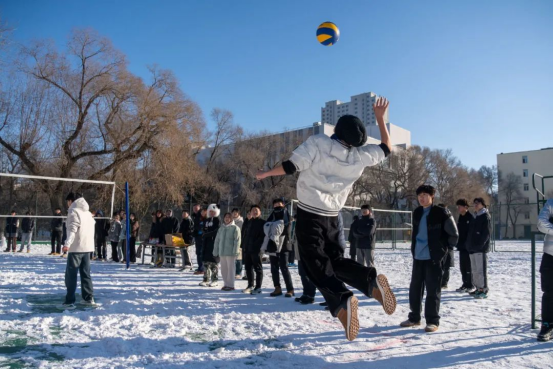 本次雪地排球赛,是一次冰雪与排球深度交融的勇敢探索,开启了同学们在寒冬中迈向户外、拥抱运动乐趣的新大门,让排球运动的热情在冰雪世界中熊熊燃烧。无论是奋力拼搏的选手,还是热情助威的观众,都在这场赛事中收获了珍贵的快乐与深厚的友谊。