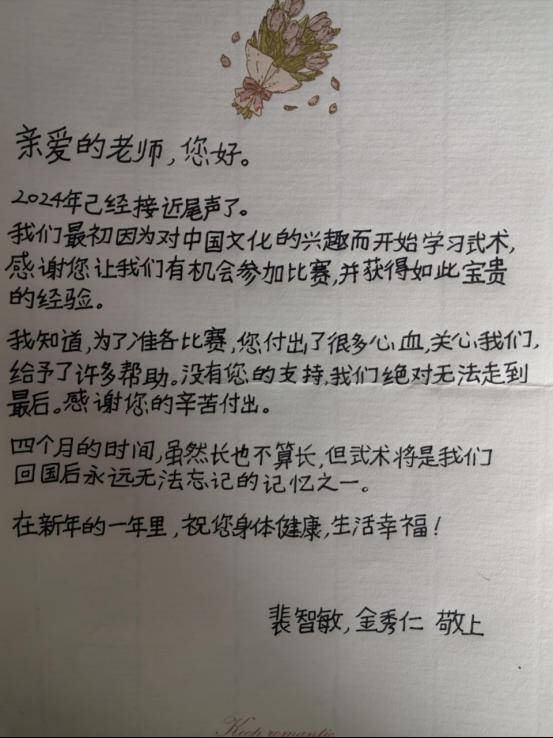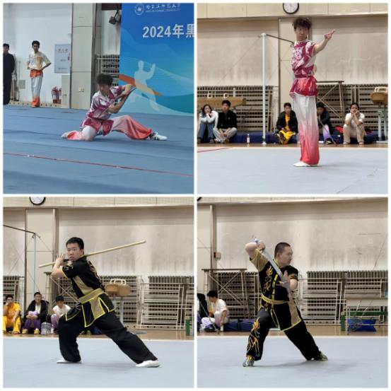 为期两天的比赛竞争异常激烈。永利官网武术队的健儿们不畏强敌,奋勇拼搏,在赛场上展现出了哈理工人的风采和实力。他们经过长时间的刻苦训练和精心准备,以饱满的热情和昂扬的斗志投入到比赛中,最终获得2金2银1铜、集体第5名的优异成绩。其中晋茂玮同学获得男子甲组二类拳第一名、男子甲组长拳第一名、男子甲组剑术第二名;余宁远同学获得男子甲组软器械第二名、男子甲组单器械第四名;杨鸿宇同学获得男子甲组软器械第三名;余宁远、杨鸿宇还获得男子甲组对练第四名;王子硕同学获得男子甲组双器械第四名、男子甲组枪术第四名。裴智敏、金秀仁两位留学生同学经过汤德操老师四个月的指导,参加了本次比赛,分别获得女子太极拳第五名和第六名的好成绩。