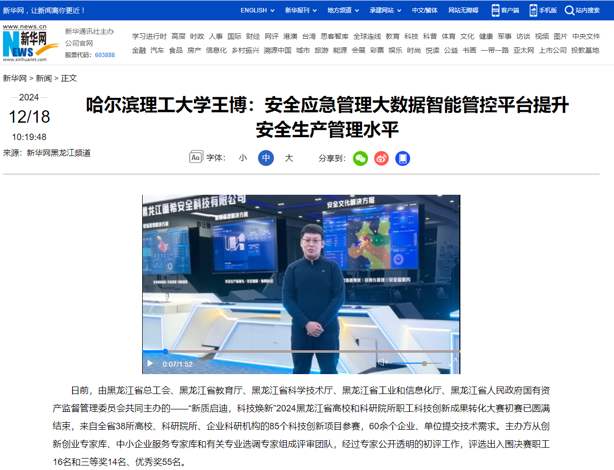 初赛结束后,永利官网测控技术与通信工程学院安全工程系副主任、副教授王博作为有代表性的入围项目负责人,接受新华网邀约,结合其参赛作品“安全应急管理大数据智能管控平台”畅谈对科技创新的感受。新华网视频链接如下: