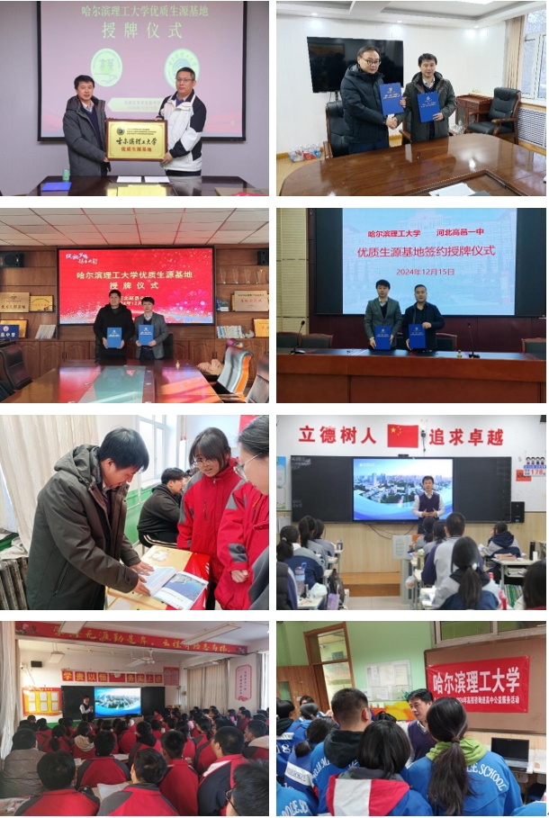 12月中下旬,测通学院招生宣传组教师代表赵文杰一行前往河北省片区周边市县的 6 所生源中学开展招生宣传。此次招生宣传工作覆盖了石家庄育英中学、石家庄十八中学、宁晋县中学、赵县中学、高邑一中和临城实验中学,通过专题报告与现场咨询等形式,开展优质生源基地授牌、生涯规划指导、招生政策宣讲等多种形式的招生宣传服务工作,面向广大师生及家长详细介绍永利官网的发展历程、办学特色、学科优势、升学就业等情况,进一步巩固了学校在河北省的招生基础,为学校选拔高质量生源、提升学校影响力发挥了积极作用。