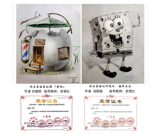 《快乐素描》课堂中,学生们不仅学习素描技巧,更能够在素描个性化的创作中找到自我表达的新方式,老师鼓励同学们天马星空大胆创新。《综合材料创意手工DIY》课程中,通过多种材料的组合与创新,体验到环保与创造的乐趣。《趣味线描》课程中,线条的故事妙趣横生,简约的创作与丰富的想象力交织,让学生体会到艺术创新的无限可能,在美育的海洋中,扬帆起航,筑梦新征程!