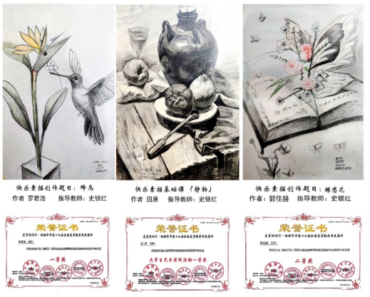 在美育创意工坊的课堂上,老师们不仅传授技艺,更希望点亮每位学生心中的艺术之光。通过《快乐素描》、《综合材料创意手工DIY》和《趣味线描》的学习,学生们在实践中探索自我,感受艺术的力量,体悟生活的美好。每一次挥笔、每一张纸上的构思,都是他们内心世界的真实写照;每一件手工艺术成果的诞生,都是学生勇于尝试在艺术的世界中尽情发挥自由遨游。艺术创新不再是遥不可及的梦想,而是生活中触手可及的乐趣与灵感。